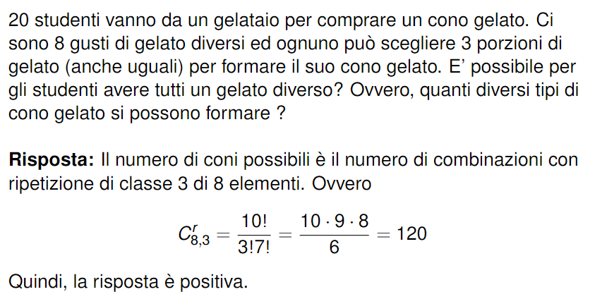 Più in generale se dobbiamo fare operazioni di scelta, tali che la prima si può fare in modi, la seconda in modi indipendenti dalla scelta precedenti, la i-esima in modi e quindi la k-esima in modi diversi allora il numero di scelte totali è