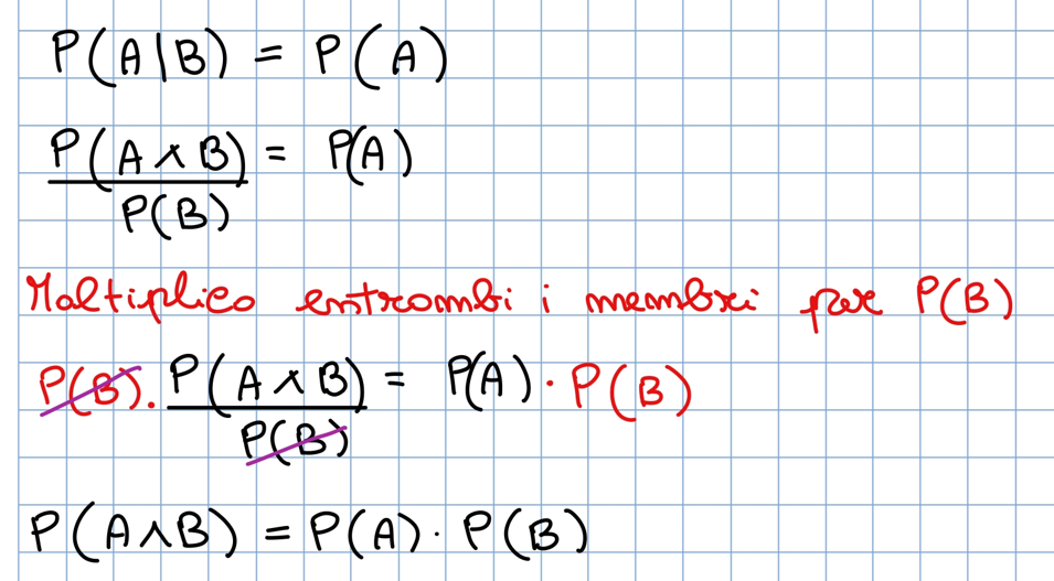Definendo questa cosa capiamo che due eventi si dicono indipendenti se: