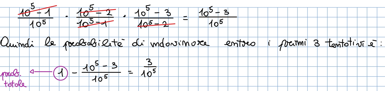 - Se abbiamo su giorni possibili per la seconda, se devono essere giorni diversi. Quindi, la probabilità che siano nati in giorni diversi è .