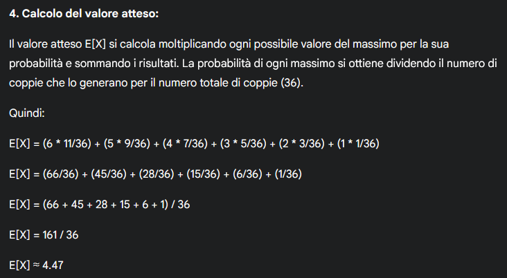 Domanda: Se lanciamo 2 dadi, qual è il valore atteso del massimo dei 2 valori.