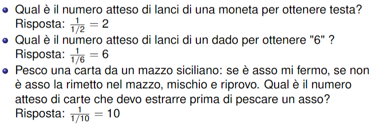 Il numero atteso dei numeri di tentativi da fare per ottenere “successo” è dato da 1/p.
