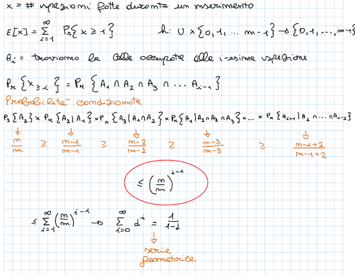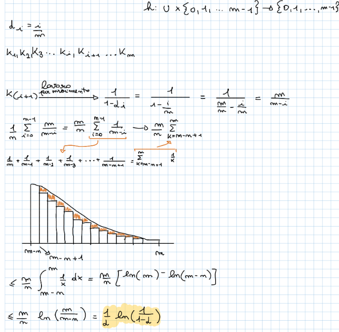 Dimostrazione: il numero di elementi esaminati durante una ricerca con successo di un elemento è uno in più del numero di elementi che si trovano prima di nella lista di . Gli elementi prima di li troviamo facendo: Ricordiamo che . Dunque il numero atteso di elementi esaminati con successo è:Di seguito la risoluzione: