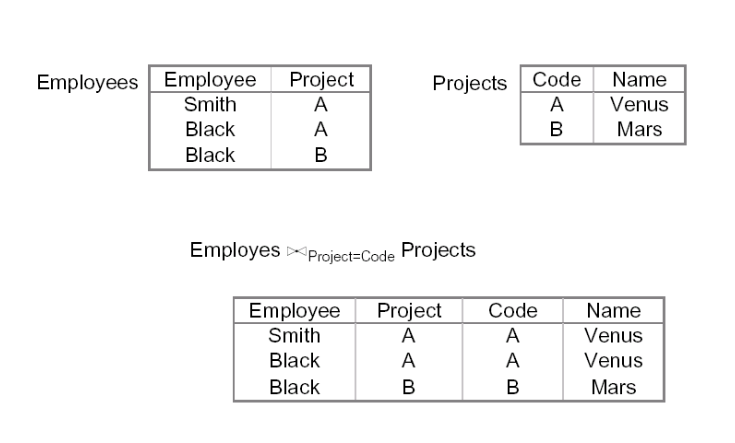 cioè: le ennuple del risultato sono ottenute combinando le ennuple di e che hanno gli stessi valori negli attributi con lo stesso nome