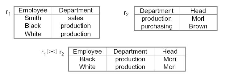 Intersezione: Date due relazioni definite sulla stessa lista di attributi allora il natural join coincide con l’intersezione delle due relazioni