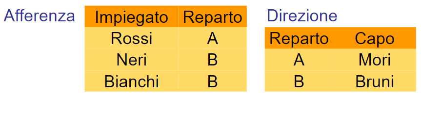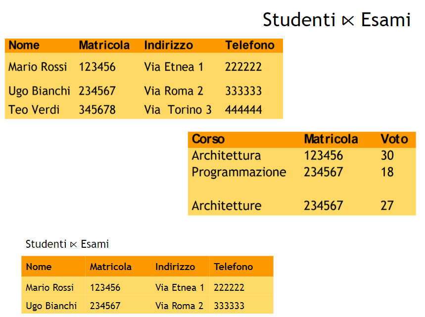 Siano gli attributi di ed quelli di , allora si ha che: Data la tabella Esami formata dalla matricola e dalla materia passata, per rispondere alla domanda: