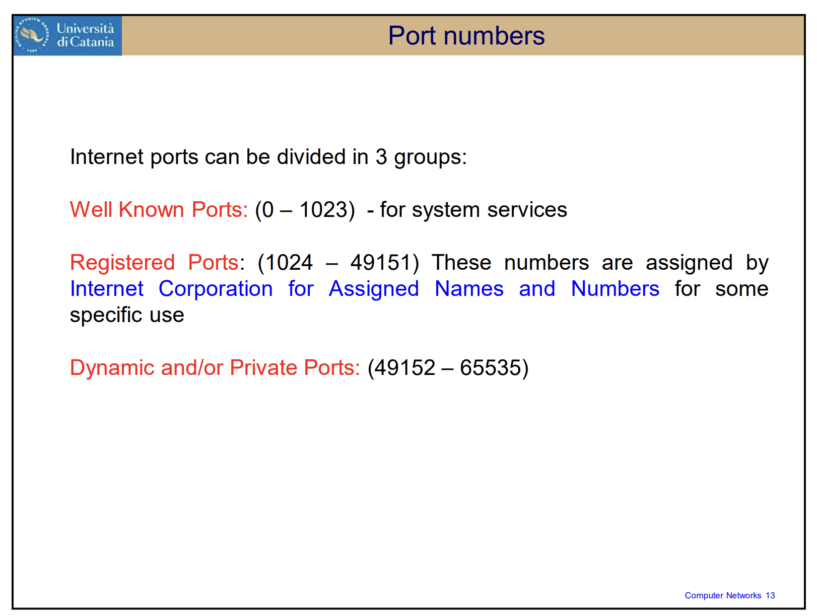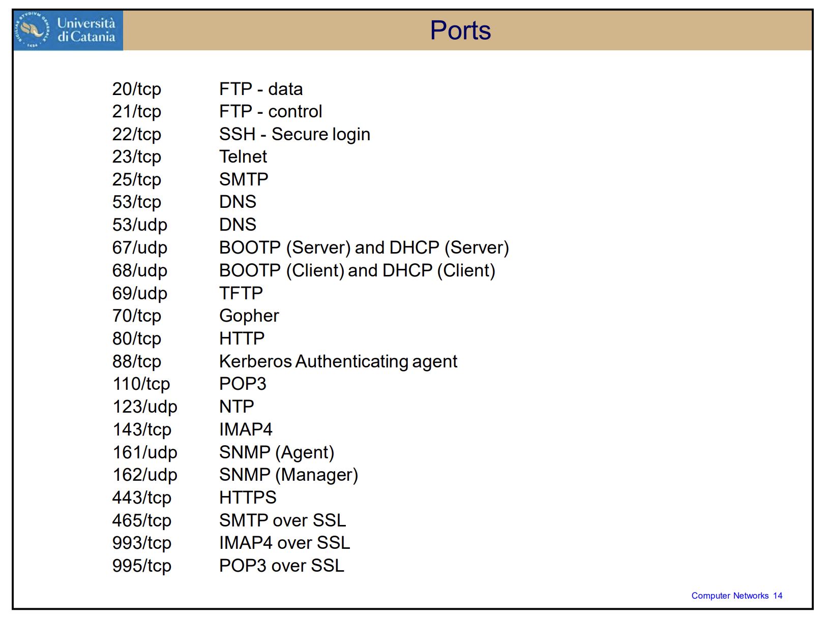 1.Well Known Ports: Sono porte che possono essere chieste solo ad un processo, login e pass
