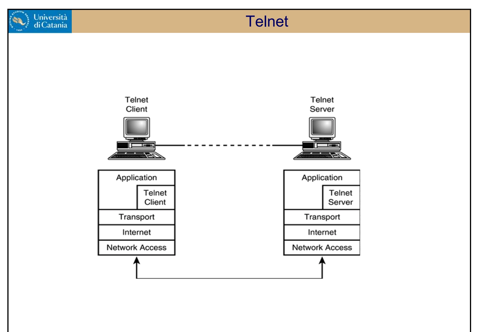 Questa immagine mostra un esempio classico di come funziona Telnet (un protocollo per l’accesso remoto) sfruttando i meccanismi di controllo del trasporto del protocollo TCP.