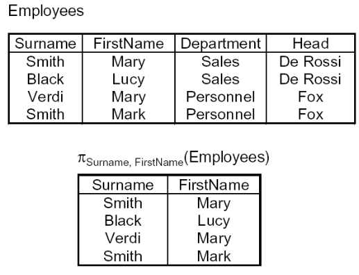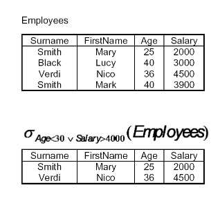 Produce un risultato con lo stesso schema dell’operando iniziale ma con un sottoinsieme di ennuple