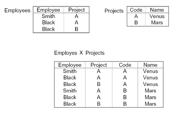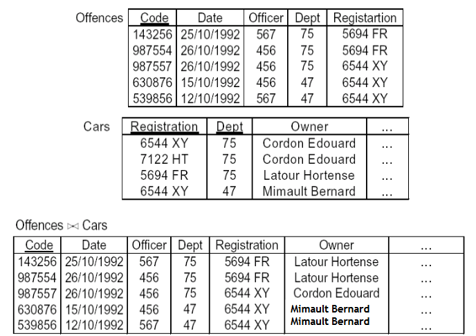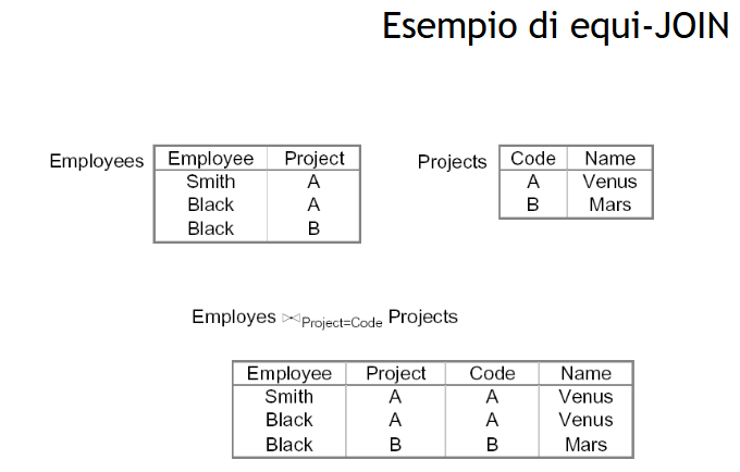cioè: le ennuple del risultato sono ottenute combinando le ennuple di e che hanno gli stessi valori negli attributi con lo stesso nome