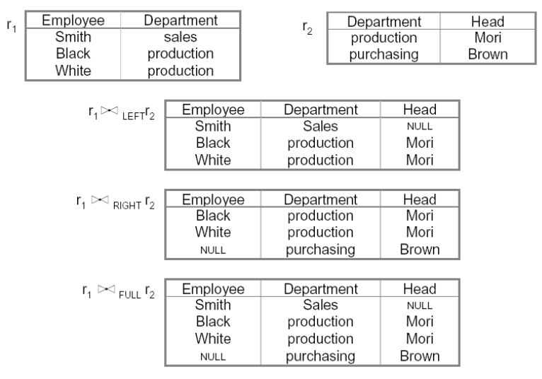 - Nel caso in cui alcuni valori tra gli attributi comuni non coincidono allora si possono avere delle ennuple che non partecipano alla JOIN questi si chiamano dangling ennuple